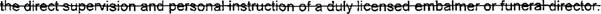 6 suoervision and personal instruction of a funeral services license holder.