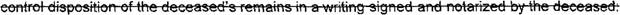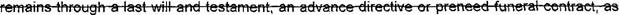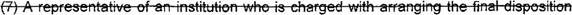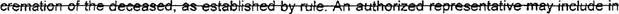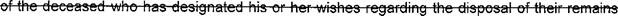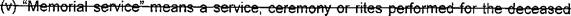 47 (r) "Memorial service" means a service, ceremony, or rites performed for the deceased 48 without a body present.