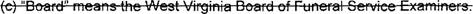 7 (b) "Board" means the West Virginia Board of Funeral Service Examiners.