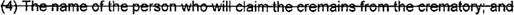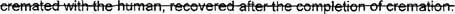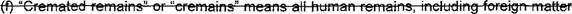 10 (d) "Cremains" means all human remains. including foreign matter cremated with the 11 human. recovered after the completion of cremation.