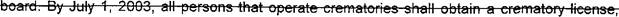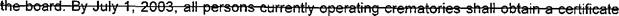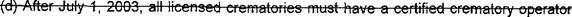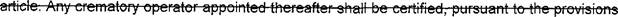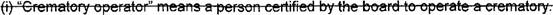 18 (g) "Cremat0!Y operator" means a person certified by the secretary to operate a 19 crematory.