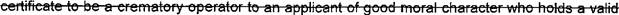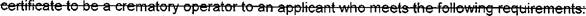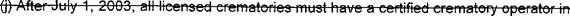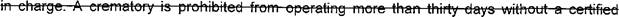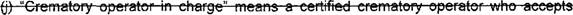 (h,) 'Crematory operator in charge" means a certified