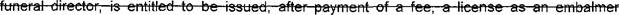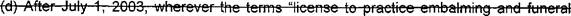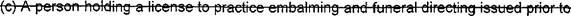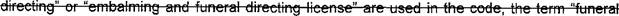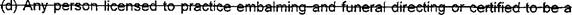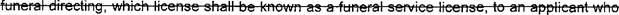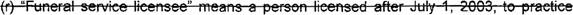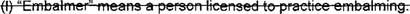 39 (o) "Funeral service licensee" means a person licensed to practice embalming and