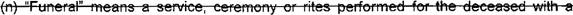 27 (k) "Funeral" means a service. ceremony. or rites performed for the deceased with a