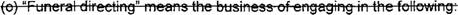 29 (l) "Funeral directing" means the business of engaging in the following: