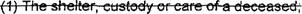30 (1) The shelter, custody, or care of a deceased;