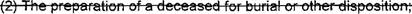 31 (2) The preparation of a deceased for burial or other disposition: