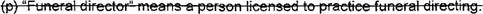 35 (m) "Funeral director" means a person licensed to practice funeral directing.