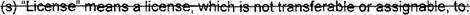 41 (p) "License" means a license. which is not transferable or assignable, to: