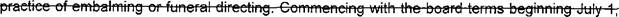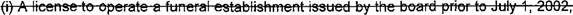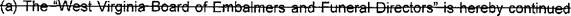 78 (a) The West Virginia Board of Funeral Service Examiners, previously established under 79 this article. shall terminate on June 30. 2018. Any license, certificate. or registration issued by 80 that board prior to July 1, 2018 shall remain in effect for the period specified at the time the 81 license. certificate. or registration was issued.