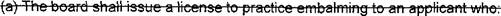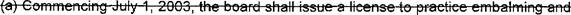 42 (I) Practice embalming and funeral directing: or