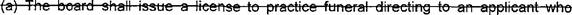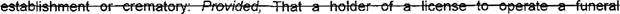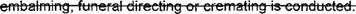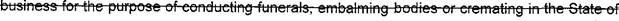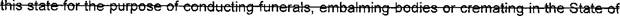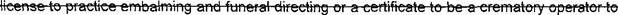 practice embalming, funeral directing, cremation, or to operate a