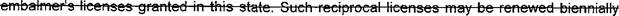 99 (f) All licenses, certificates. or registrations issued by the board after the effective date of 100 the amendment of this section in the 2018 regular session of the Legislature, but prior to the 101 termination of the board, shall be valid if signed both by the executive director of the board and 102 by any member of the board or. in the absence of any available member of the board. by the 103 Secretary of State.