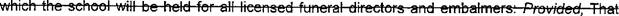 5 Therefore, the Legislature hereby finds that to protect the public interest a person must 6 have a license or certificate, as provided in this article, to provide funeral services and practice