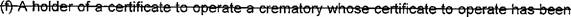21 responsibility for the operation of a crematory.